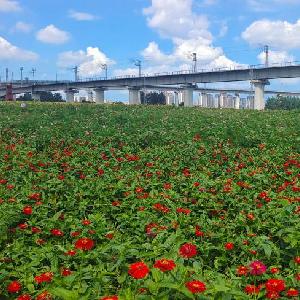 东港区利用“超高温好氧发酵”技术,将裸土绿化和景观美化融为一体,选用波斯菊、荷兰菊、矮向日葵、玉簪等具有多年生、根系发达、耐旱耐寒、易养护、绿期花期长的花草进行种植。从先期试验到逐步推开,如今43万平方米“城市疮疤”变成了花海、绿园,四季常绿,三季繁花次第开放。