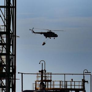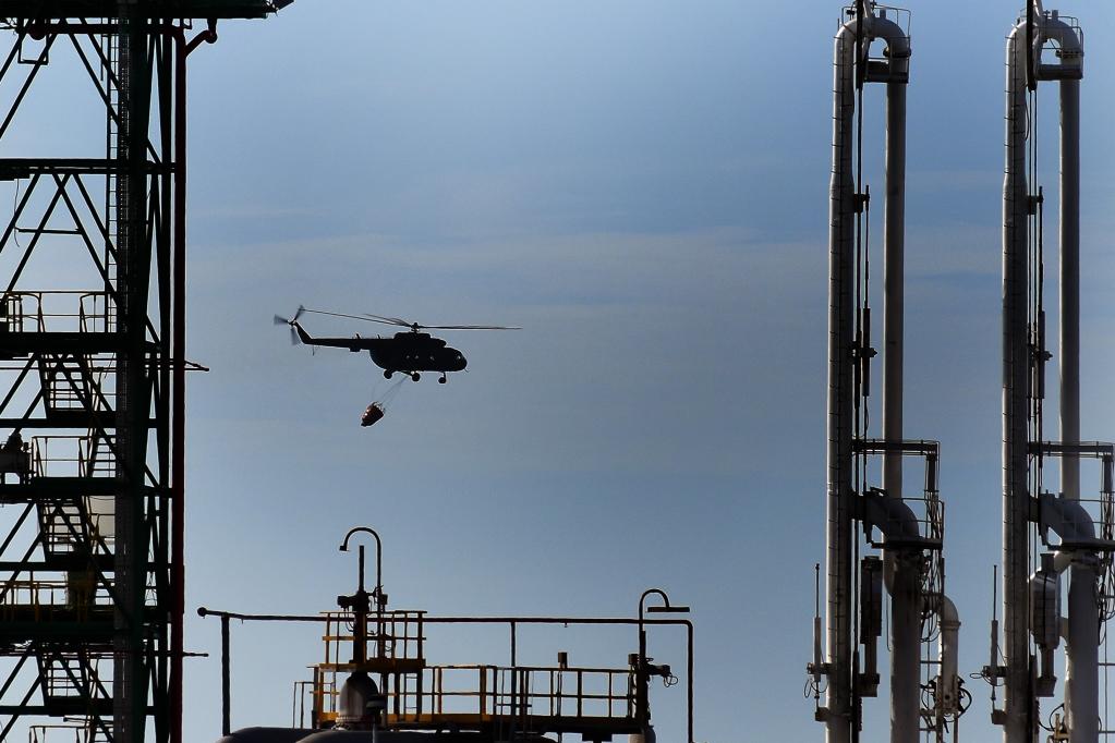 8月8日,在古巴马坦萨斯省,消防直升机在火灾现场作业。(新华社发)