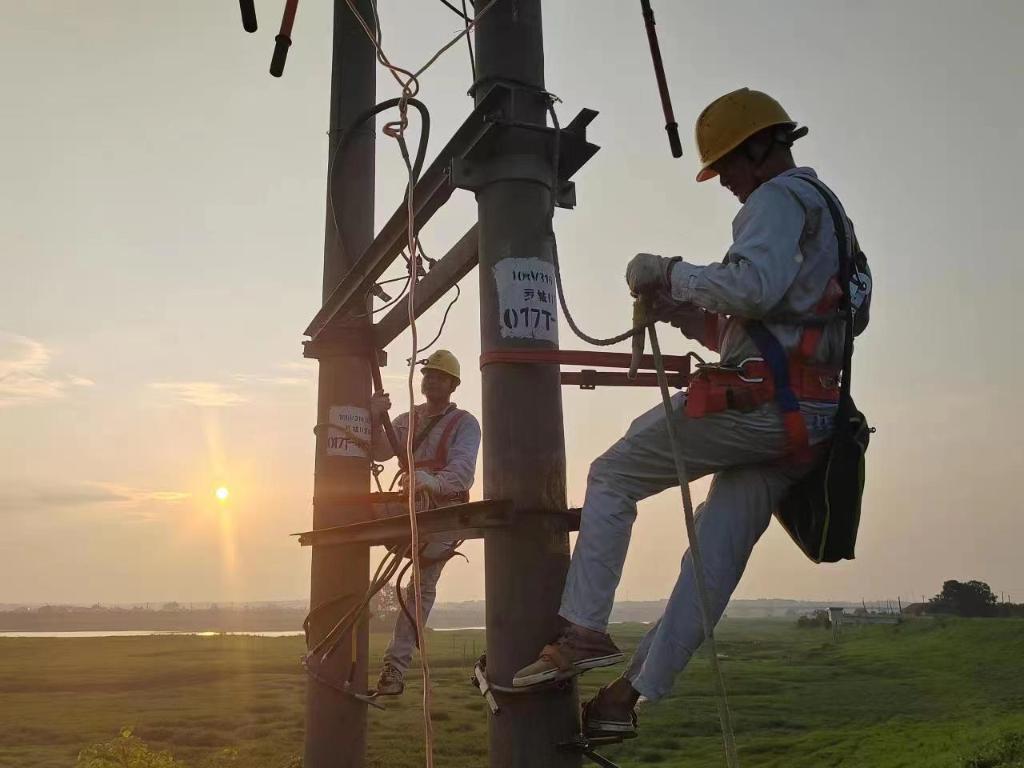 国家电网岳阳供电公司的工作人员在安装为农田灌溉送电的变压器。(受访者供图)