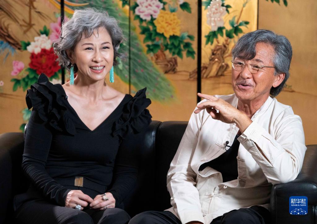 8月4日,林子祥(右)和叶倩文接受新华社记者采访。新华社记者 吕小炜 摄