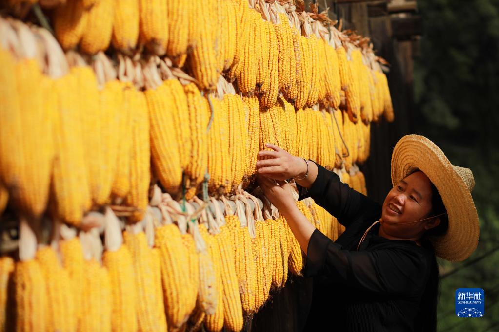 立秋过后,贵州高原乡村处处晒秋忙。玉米、辣椒、稻谷、黄豆等农作物晾晒在农家房前屋后,与周围别具特色的田园风光融为一体,绘就出一幅幅美丽的丰收图景。