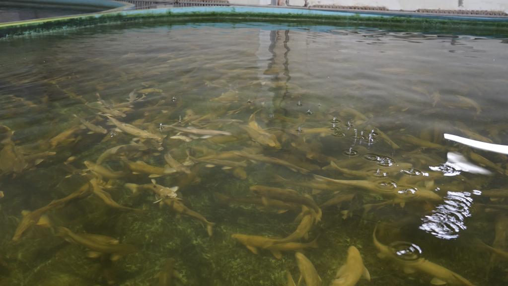 位于青海省海北藏族自治州刚察县的青海湖裸鲤救护中心沙柳河泉吉河增殖实验站,是湟鱼“人工大产房”之一。记者看到,在实验站车间里,分布着一个个圆形大水缸,密密麻麻的小鱼苗形似小蝌蚪般,随着清澈的水流在水缸内快速地转着圈游动。