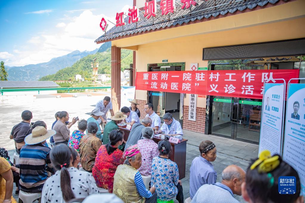 8月12日,在重庆市巫溪县红池坝镇茶山村,廖正步和同事为村民义诊。