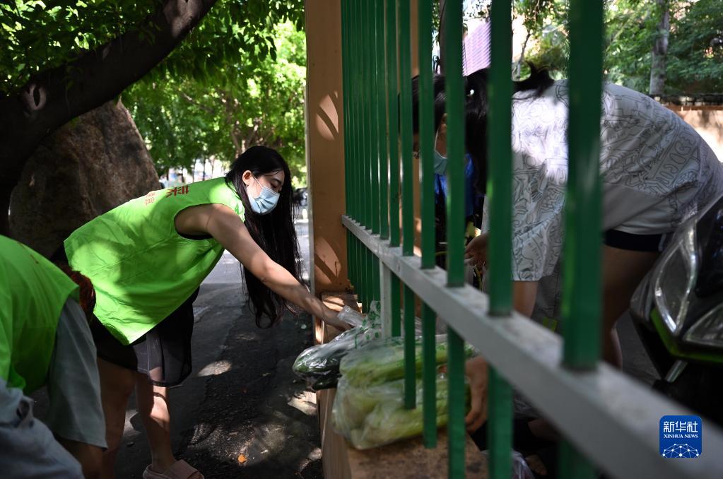 8月14日,吴凡力(左二)、张海洋在为市民配送生活物资。