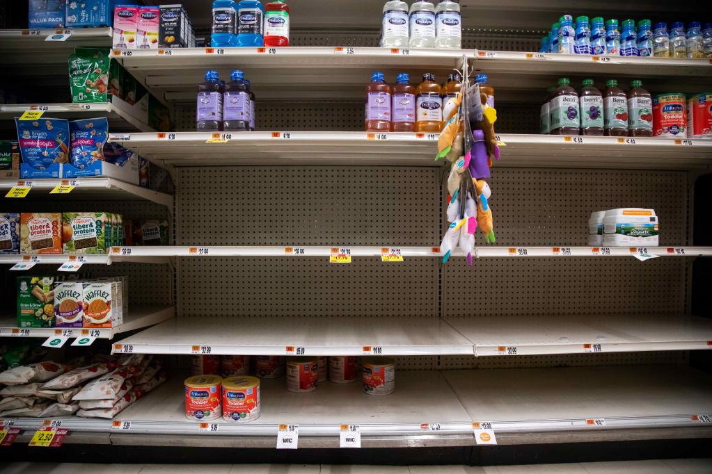 5月24日,在美国纽约市布鲁克林区,一家超市的婴幼儿奶粉货架出现缺货。(新华社发 郭克摄)