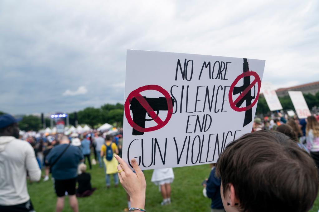 6月11日,在美国首都华盛顿,参加集会人员手持标语牌,要求政府和政客应对枪支暴力问题,加强保护儿童生命安全。(新华社记者刘杰摄)