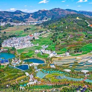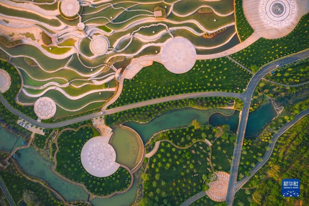 通过人工引水、土壤改良、植苗造林等方式,工程团队为12000余亩石漠化严重的山地披上了绿装。如今,景区覆盖8000余亩花卉苗木,成功栽种20余万株乔木、灌木,形成了由山顶生态林、山腰绿化景观林、山底复合农林、湖滨防护林和湿地水生植物组成的生态修复体系。