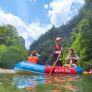 夏日炎炎,贵州省黔东南苗族侗族自治州施秉县杉木河上凉风习习。施秉县山水秀美,夏无酷暑、冬无严寒。流经县城的杉木河,河水清澈,蜿蜒盘旋;两岸高山林立,奇峰耸峙。连日来,大批避暑游客来到这里体验漂流。