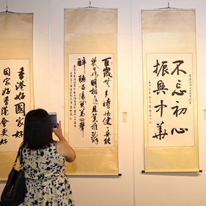 中国书协香港分会主席施子清表示,分会会员用书法作品表达拳拳赤子心,弘扬中华传统文化。“我们通过书法创作,歌颂祖国、祝福香港。”