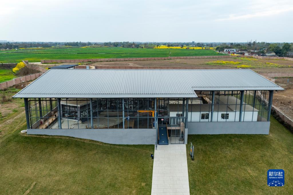 三星堆遗址考古发掘现场的保护大棚以及其内的“考古舱”(无人机照片,2021年3月1日摄)。新华社记者 沈伯韩 摄