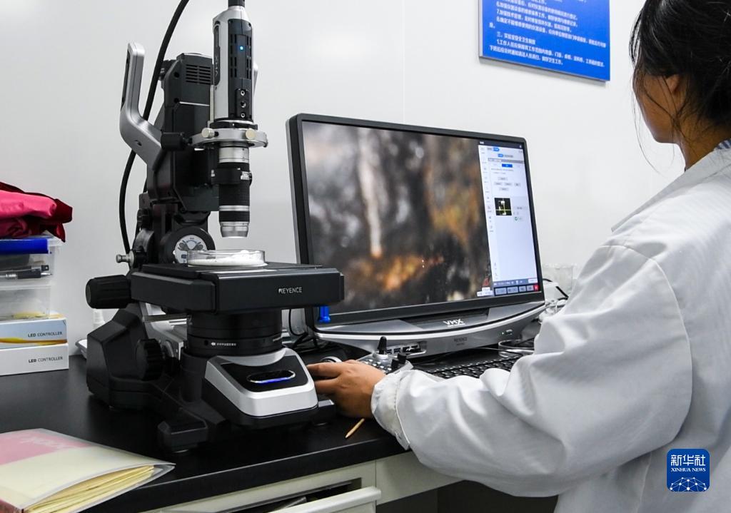 在四川省广汉市三星堆祭祀区考古发掘现场实验室,万娇博士团队对种子进行扫描登记(视频截图 6月1日摄)。新华社记者 唐文豪 摄