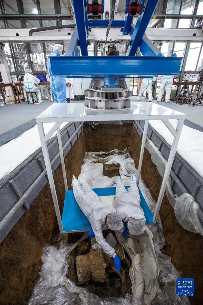 三星堆遗址发掘总领队、四川省文物考古研究院院长唐飞告诉记者,在这样的“考古舱”里开展发掘工作,不仅能控制发掘现场的温度、湿度,还能减少工作人员带入微生物、细菌等。