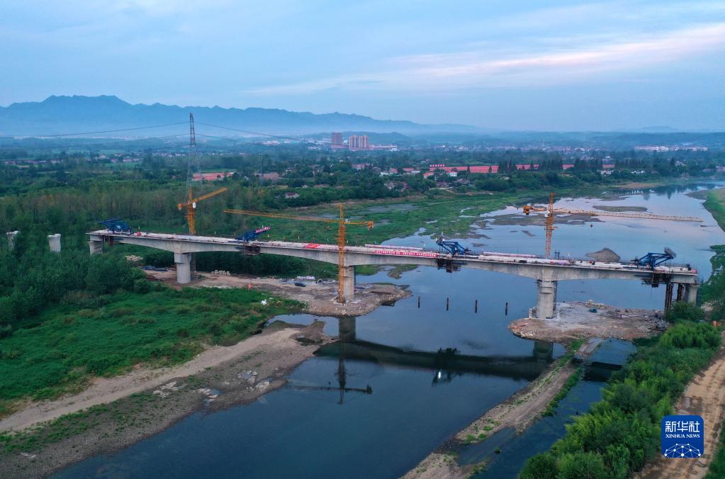 这是合龙后的宣绩铁路水阳江特大桥连续梁(8月16日,无人机照片)。