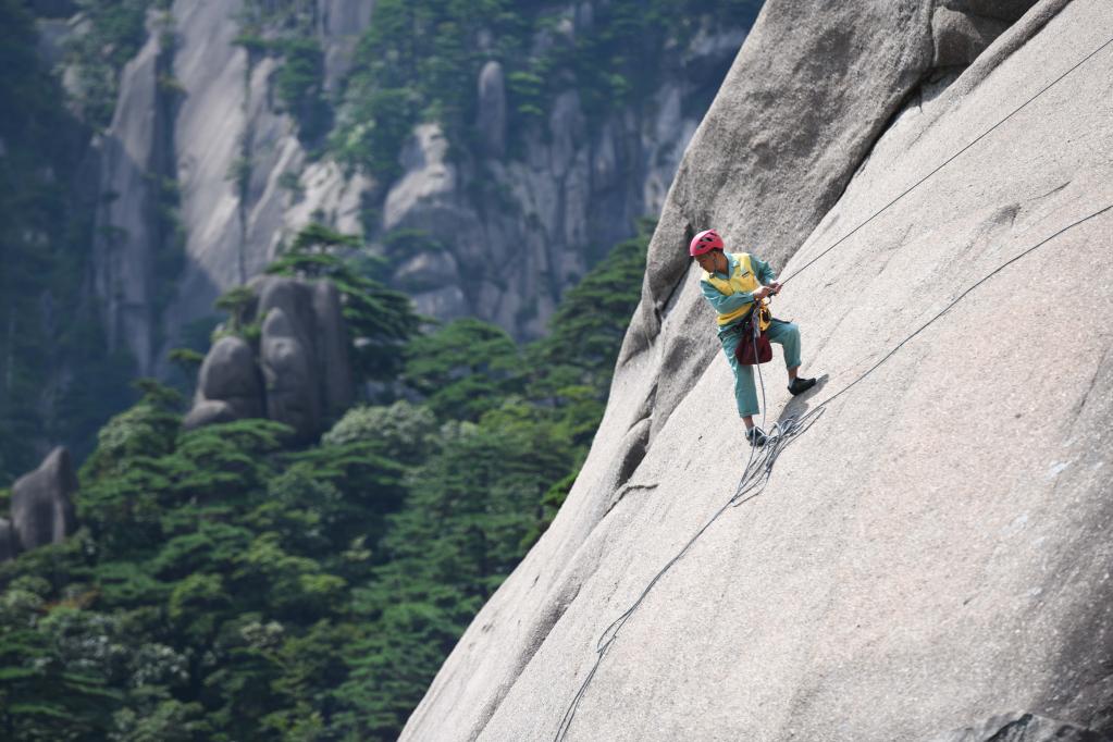 此后,在黄山的悬崖峭壁间,游客时常能看到一位头戴安全帽、身系登山绳的黝黑汉子像“蜘蛛侠”一样身形矫健地穿梭于山间。