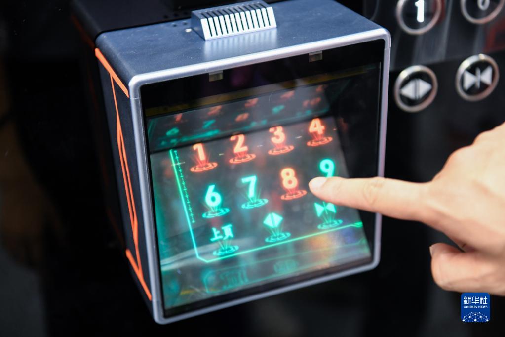 8月16日,观众在第十届中国电子信息博览会上体验非接触空气成像电梯按键。