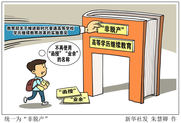 新华社北京8月17日电(记者王鹏)记者17日从教育部获悉,《教育部关于推进新时代普通高等学校学历继续教育改革的实施意见》近日印发,要求自2025年秋季起,高等学历继续教育不再使用“函授”“业余”的名称,统一为“非脱产”,主办高校可根据专业特点和学生需求等,灵活采取线上线下相结合形式教学。