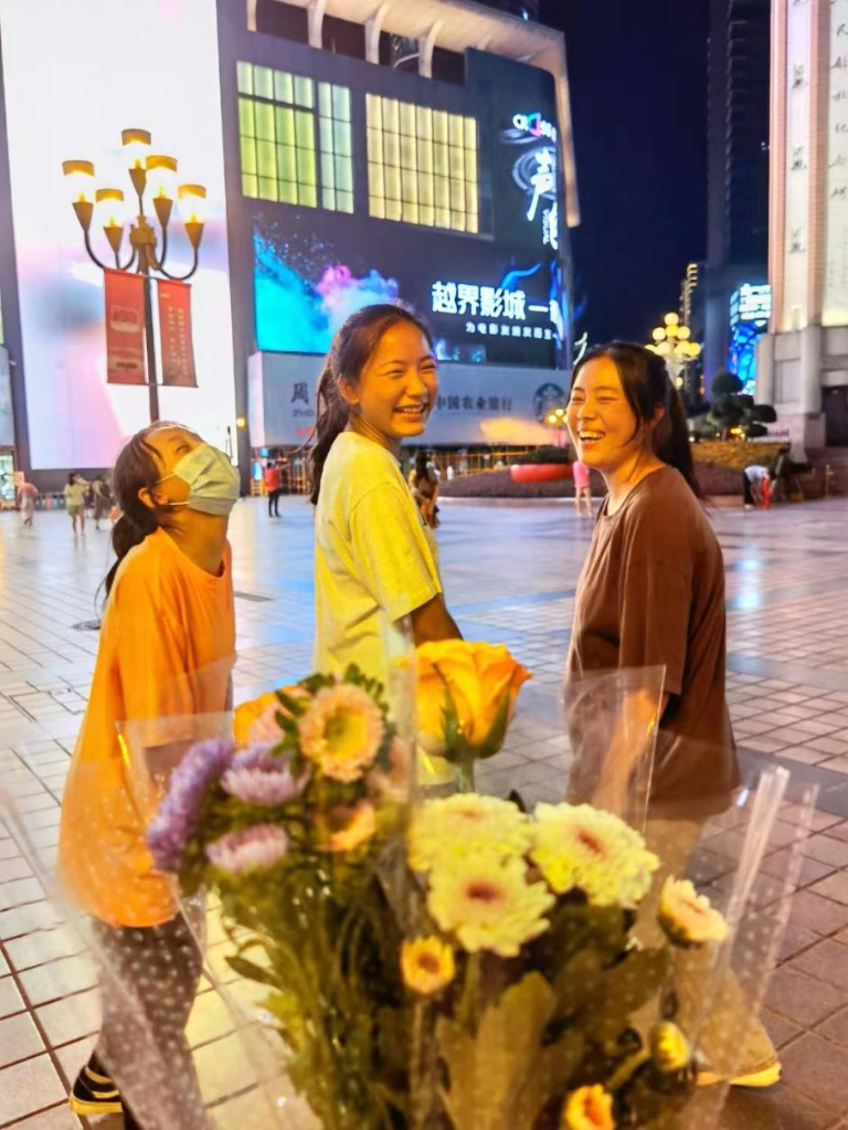 女孩们在重庆解放碑步行街合影。(受访者供图)