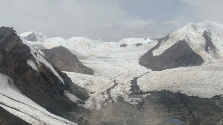 通过岗加曲巴卫星遥感图像可以看到,巨大冰川前沿形成一条条“冰舌”。冰川融水沿着河谷最终流入长江源水系,奔流而下汇入滚滚长江。