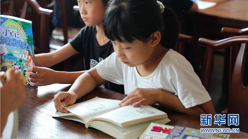 在趣味阅读课上,沈阳市宁山路小学暑期托管班学生阅读兴趣书,拓展课外知识。新华网 唐晓瑭摄