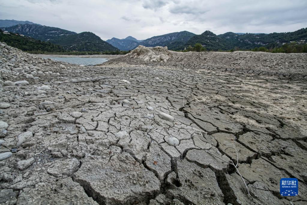 这是8月17日在法国南部城市尼斯附近拍摄的水位下降后的布罗克人工湖。