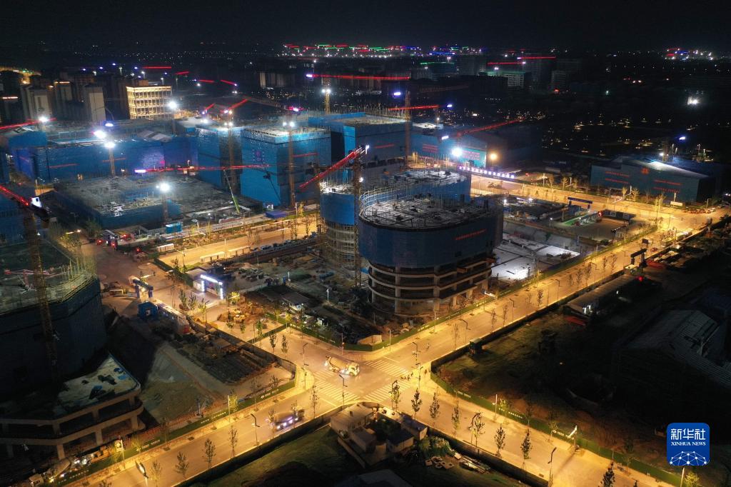 河北雄安新区容东片区雄安·电建智汇城建设项目夜景(8月17日摄,无人机照片)。
