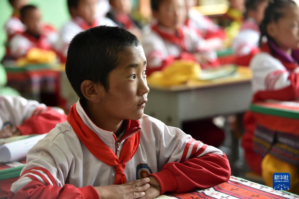 在尼玛县完全小学的课堂上,一名学生在认真听课(2018年6月14日摄)。新华社记者 觉果 摄