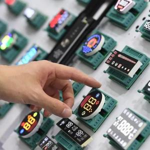 8月16日,观众在第十届中国电子信息博览会上参观数码管显示屏。新华社记者 毛思倩 摄