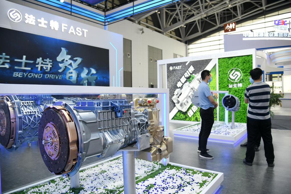 8月16日,在第六届丝绸之路国际博览会法士特集团展位上,观众了解智行集成式AMT变速器等产品。新华社记者 李一博 摄