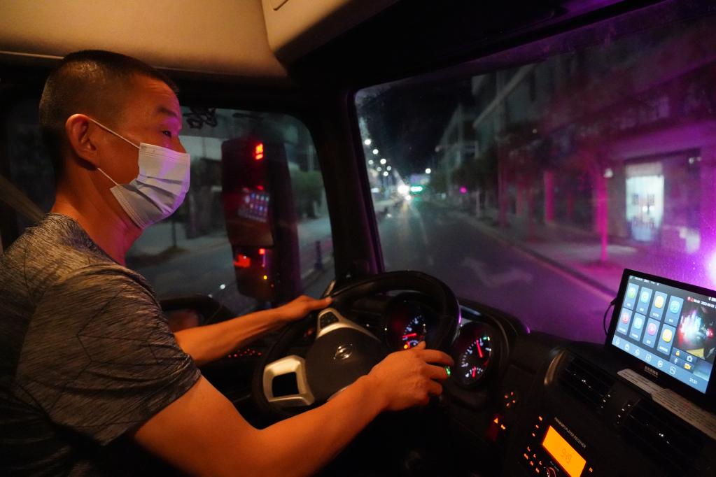 谢师傅夜间驾驶卡车(8月3日摄)。新华社记者 刘琼 摄