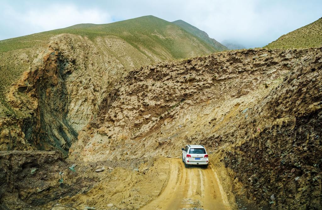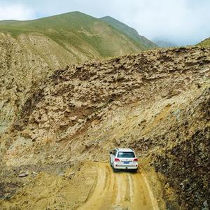科考队乘坐的车辆在山路上前行。(受访对象供图)