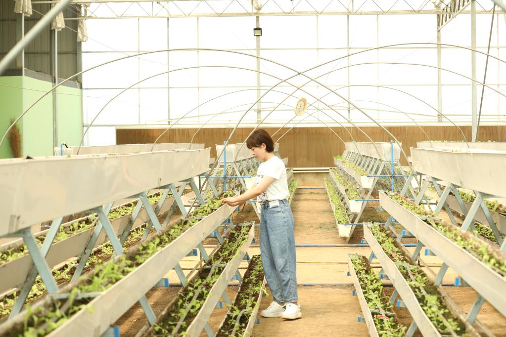 张凌云在大棚内查看蔬菜长势。 新华社记者孙正好 摄
