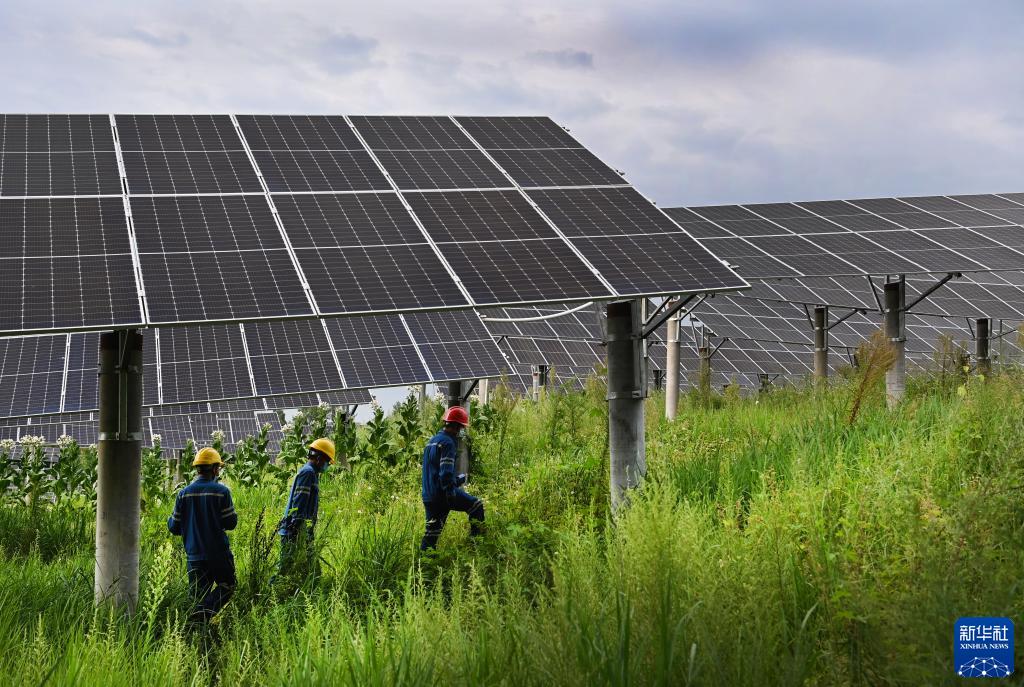 负责生产运维的湖南安华源电力科技有限公司员工对光伏区进行日常巡视(8月19日摄)。