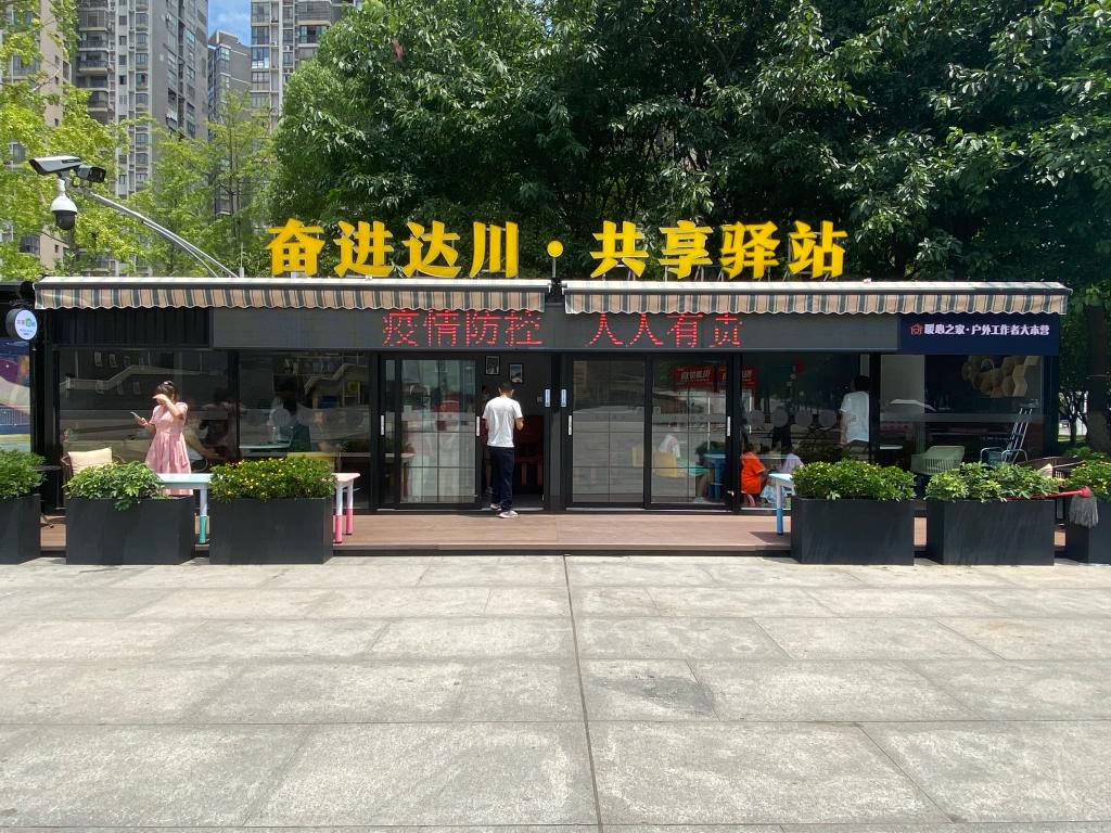 达州升华广场附近餐饮店铺密集,人流量大,这里专门设立了“骑手家园”,为外卖小哥等户外工作者提供饮水供给、餐食加热、电瓶车充电等服务,并配套有骑手培训、党建宣传等功能。