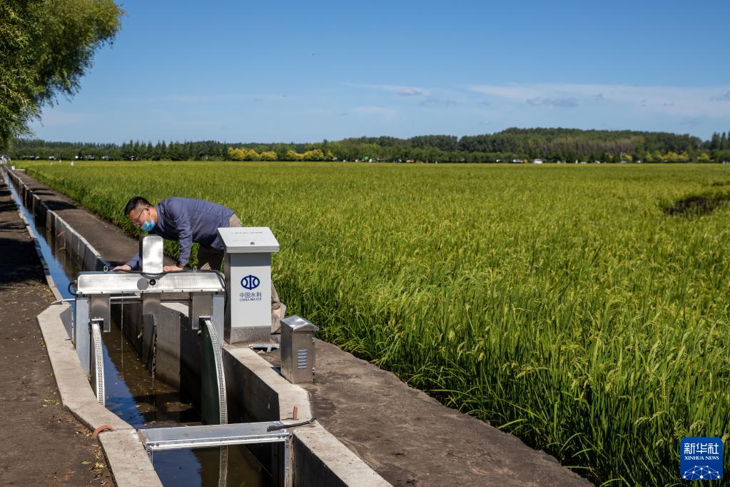 8月20日,工作人员在北大荒集团闫家岗农场有限公司农业现代化示范区内检查自动排水灌溉设备。