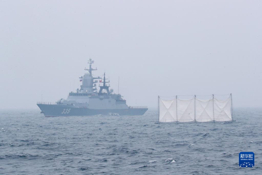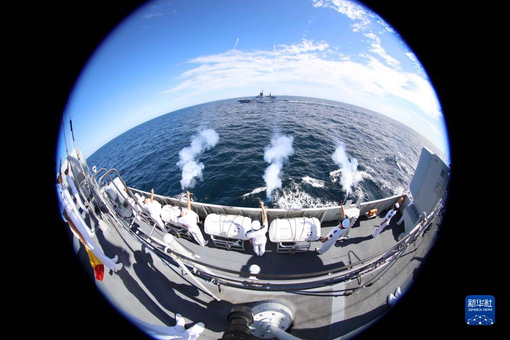 8月20日,“国际军事比赛-2022”“海洋之杯”比赛在山东青岛附近海域闭幕,中俄舰艇在闭幕式结束后分航。新华社发(于清正 摄)