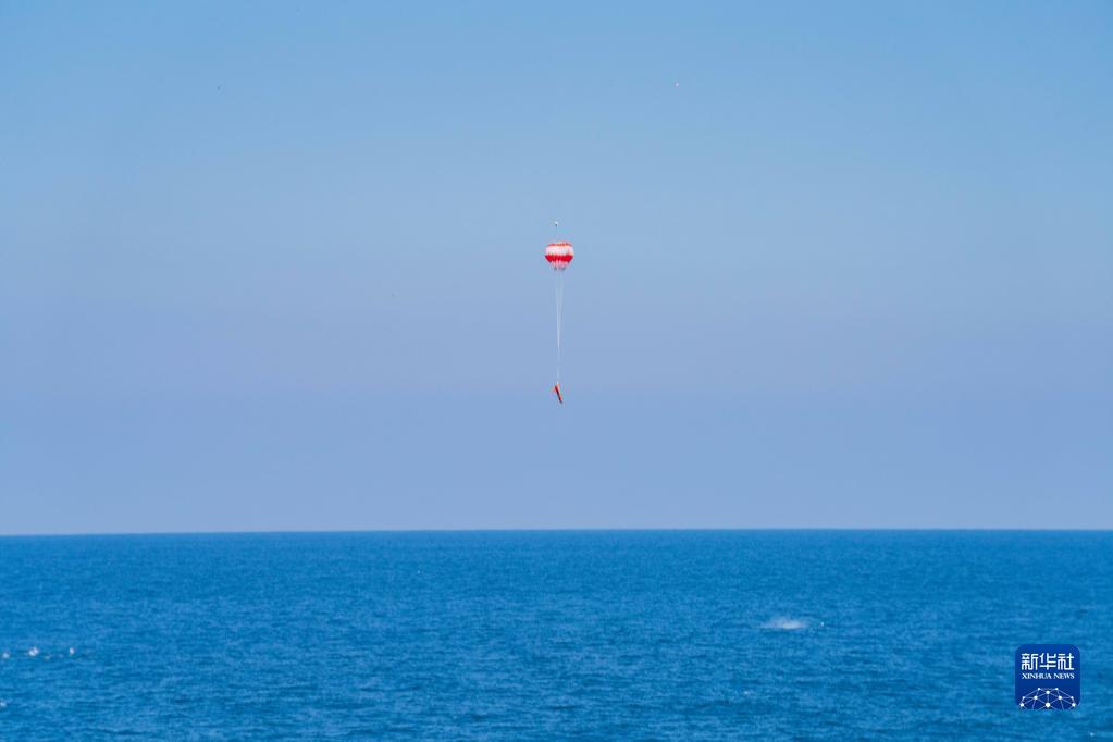 8月17日至20日,“国际军事比赛-2022”“海洋之杯”比赛在山东青岛附近海域进行。这是舰炮防空反导课目中靶机被击中后坠落(8月17日摄)。新华社发(林思鑫 摄)