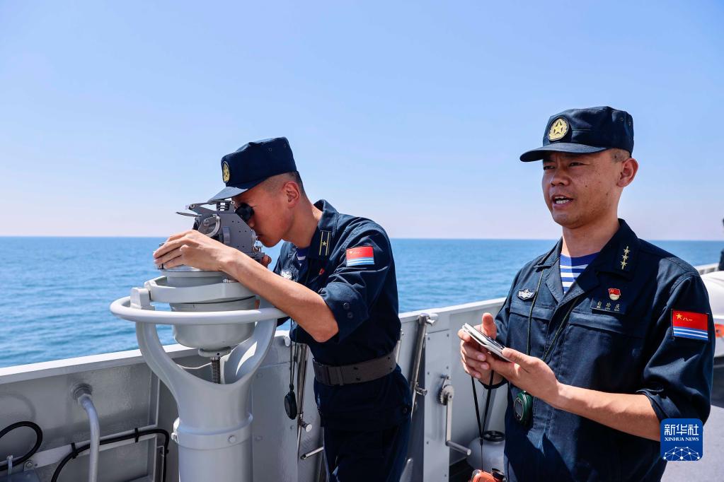 8月17日至20日,“国际军事比赛-2022”“海洋之杯”比赛在山东青岛附近海域进行。这是裁判对比赛情况进行目视观察(8月17日摄)。新华社发(于清正 摄)