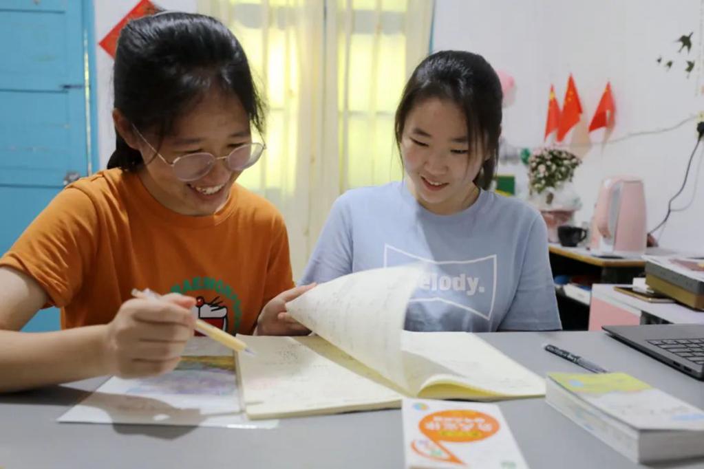 李好(右)与李慧在一起学习。新华社发(陈自德摄)