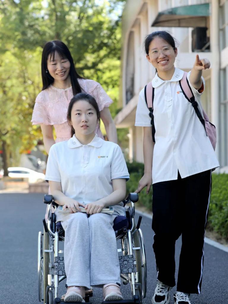 李慧(右)与李好母女一起在常德市第一中学校园内。新华社发(陈自德摄)
