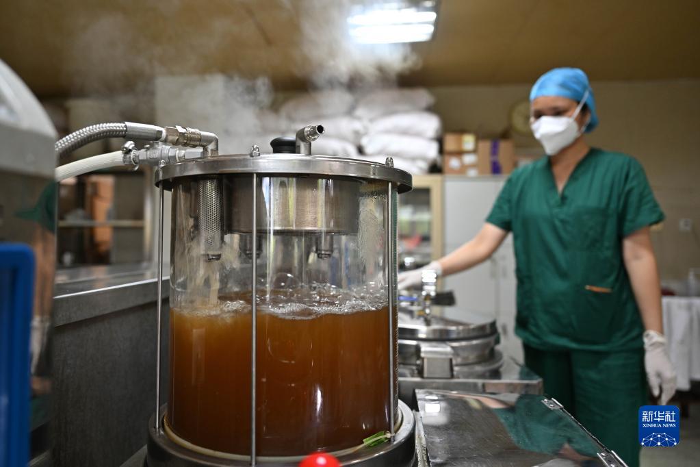 8月20日,工作人员在三亚市中医院煎煮中药。