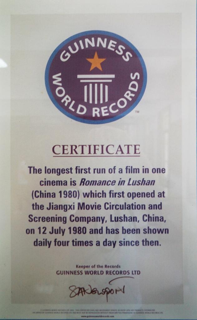 时至今日,《庐山恋》电影在庐山仍未下线,创造了“世界上在同一影院连续放映时间最长的电影”的吉尼斯世界纪录。
