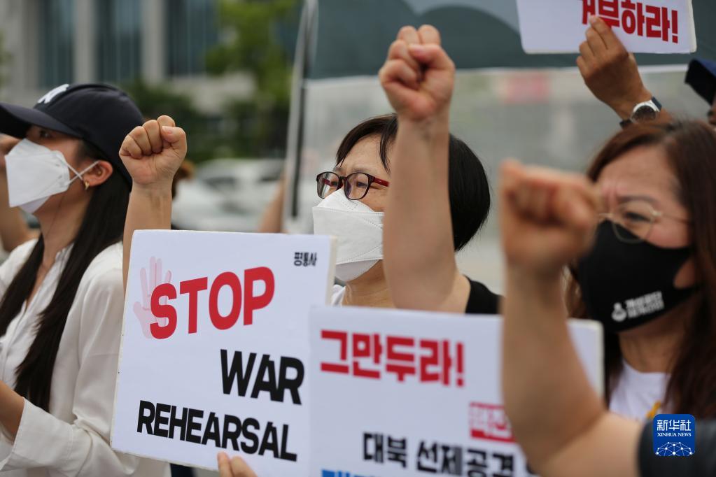 韩美两国军队22日正式启动下半年“乙支自由之盾”联合军演。韩国多个民间团体当天在首尔举行抗议集会。