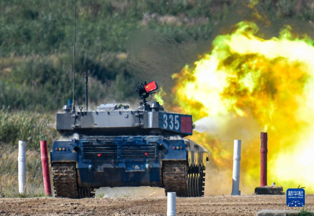 8月21日,在俄罗斯莫斯科州阿拉比诺靶场,中国参赛队96B坦克在比赛中。