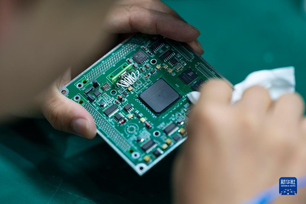 2022年8月3日,在长光卫星技术股份有限公司电装车间,陈茂胜团队的电装操作员在进行电路板清洗。