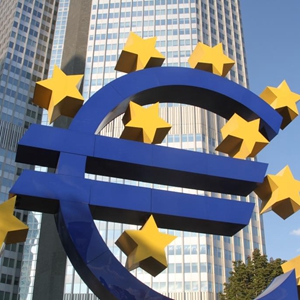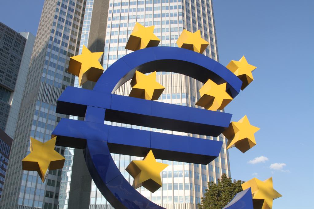 这是8月22日在德国法兰克福拍摄的欧元雕塑。(新华社记者单玮怡摄)