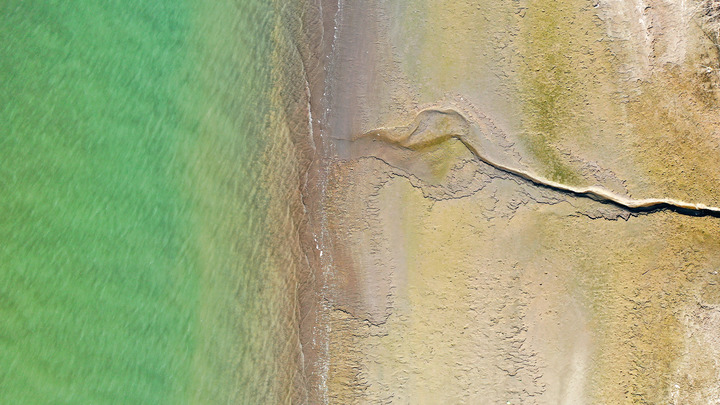 长江扬州段裸露的滩涂(8月22日摄,无人机照片)。新华社发(齐立广 摄)
