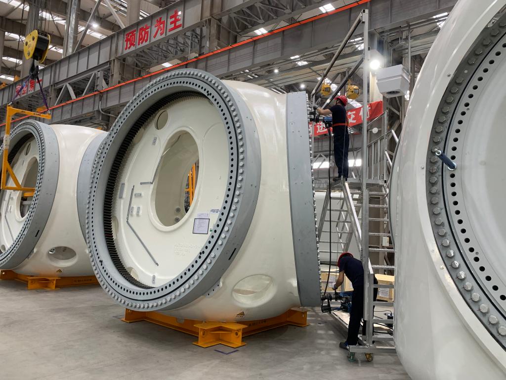 “公司2020年12月在乌兰察布市注册成立,今年5月中旬建成投产,如今已具备每天生产2台套风机的生产能力。”在乌兰察布运达风电有限公司的生产车间里,公司副总经理常伟指着一台正在组装的风机说,“我国风机研发能力及技术水平正逐年向国际水平靠拢,曾经风机的单机容量只有750千瓦,目前我们车间里生产的风机单机容量已超过6000千瓦。”