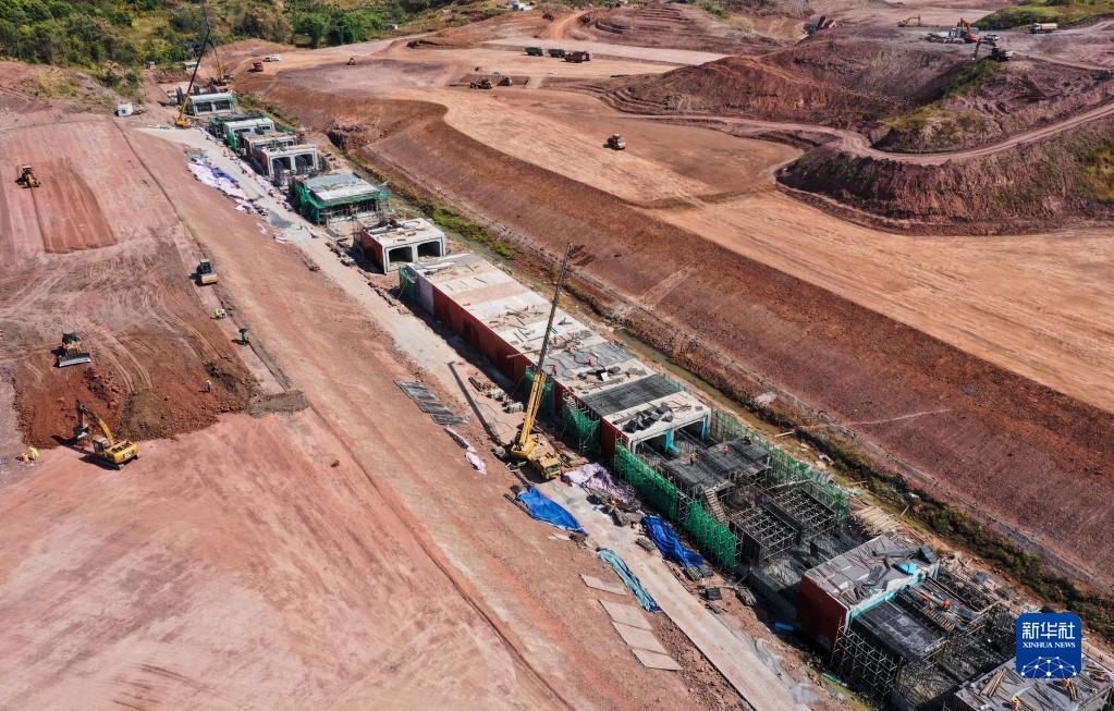 这是8月23日拍摄的新建重庆至黔江铁路重庆东站动车所路基项目施工作业现场(无人机照片)。