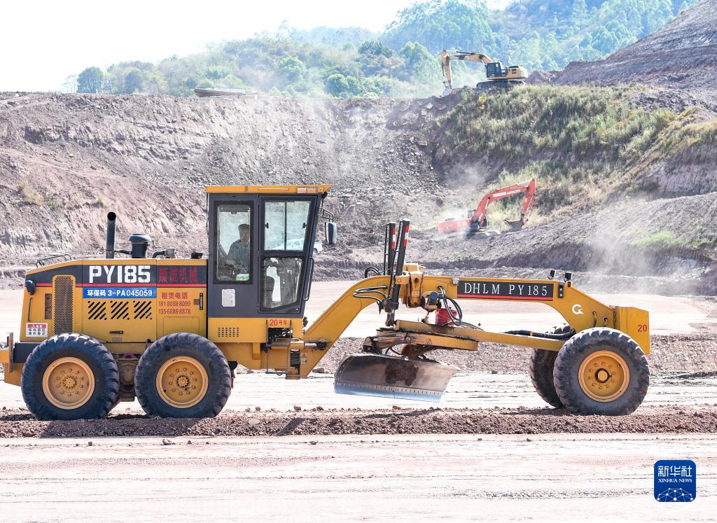 这是8月23日拍摄的新建重庆至黔江铁路重庆东站动车所路基项目施工作业现场。