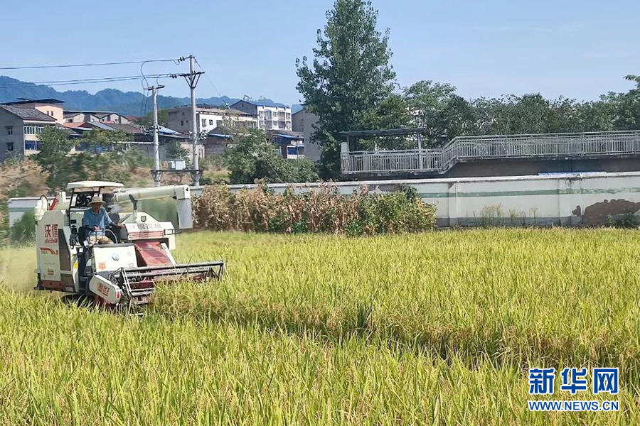 正值秋收关键时期,600台外地联合收割机进入长寿区展开收割作业。新华网 发